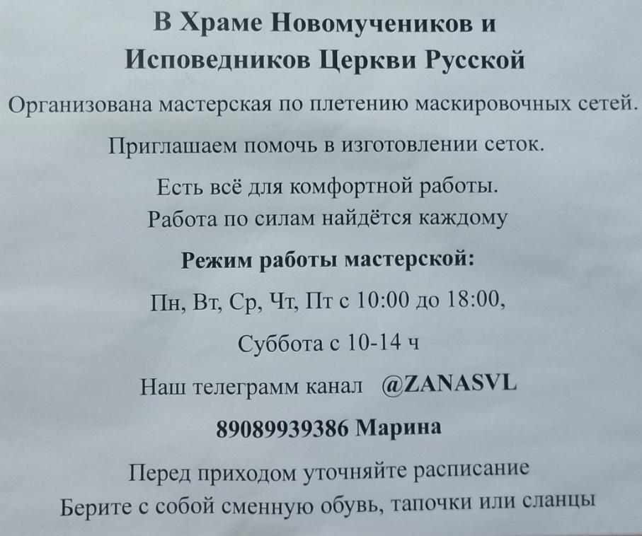 Сейчас наш приход собирает средства на колокольню. Если каждый пожертвует хотя бы 100 р, есть шанс собрать одну десятую часть от стоимости колокольни — сто тысяч рублей. Когда эта сумма будет — мы переведём её авансом и нашу колокольню начнут делать. Если соберём весь миллион, есть шанс, что колокольня у нас будет к Рождеству, или хотя бы к Пасхе.